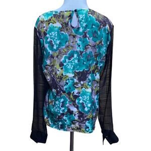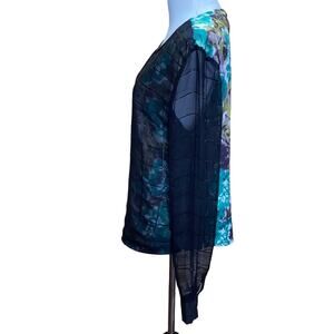 Tulle Flower Floral Overlay Sheer Blouse Large