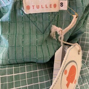 Tulle Girls Green White Plaid Checkered Bow Detail A-Line Dress Size Small New With Tags (NWT)