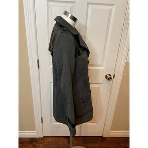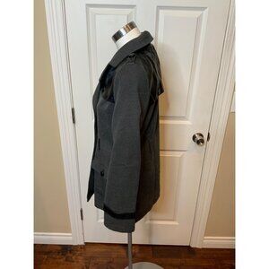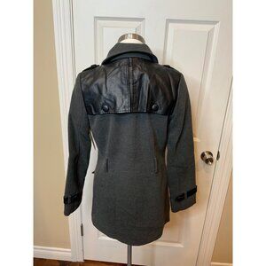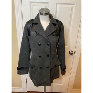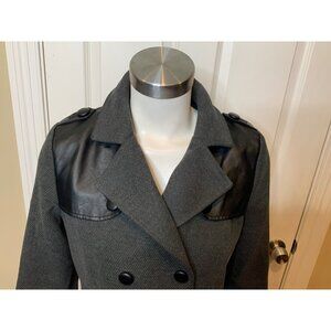 Tulle Gray Double Breasted Coat W/ Faux Leather Trim, Size S