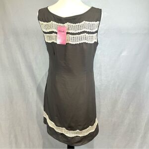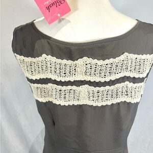 Tulle Gray and embroidered ivory lace shift dress size large NWT