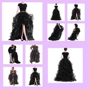 🆕Tulle High-Low Maxi Skirt/Overskirt/Petticoat/Tutu w Ruffles Small - Black