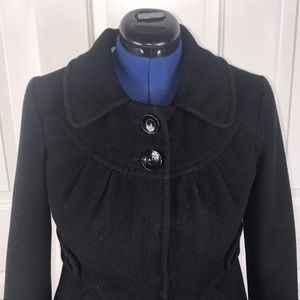 Tulle Medium black retro 2 button high collar long sleeve lined winter coat