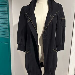 Tulle NWOT Navy Blue long utility jacket with floral lining 3/4 sleeve - small