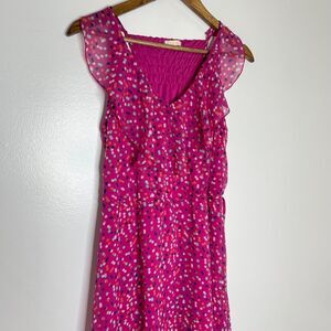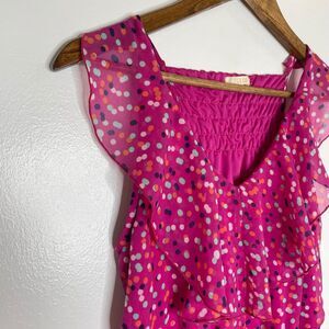 Tulle Pink Polka Dot Flutter Sleeve V-Neck Sheer Dress Size Small Women’s