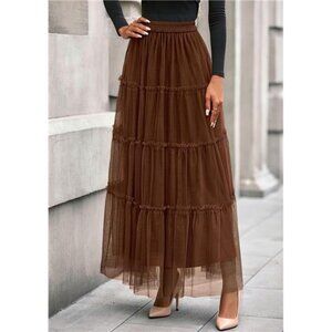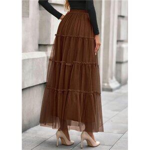 Tulle Skirts, Fashion Elastic High Waisted Skirt Coffee