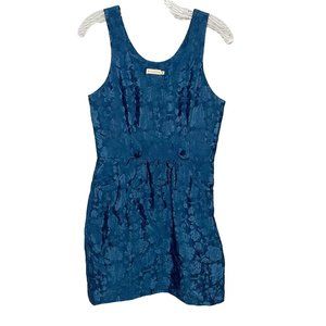 Tulle Small Blue Brocade Sleeveless Scoop Neck Mini Cocktail Dress