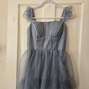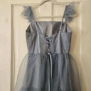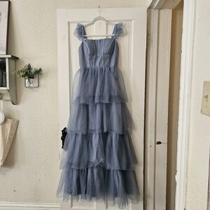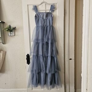 Tulle Tiered A-line Corset Back Lt. Blue Full Length Dress Women's Size 6, Fairy