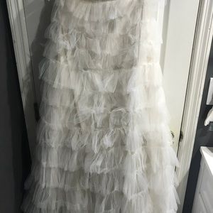 Tulle Wedding Dress from BHLDN. Gorgeous! It says 12 on the tag, but it runs small. Was not altered. I'm 5' 10". Ruffles are turned up from being in a garment bag.