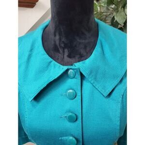Tulle Womens Blue 100% Cotton Single Breasted Six Button Blazer Coat Size XS