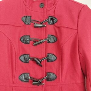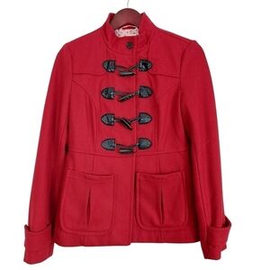 Tulle Women's Jacket Coat Sz Small Red Zip Toggle Front Lined Wool Blend Pockets