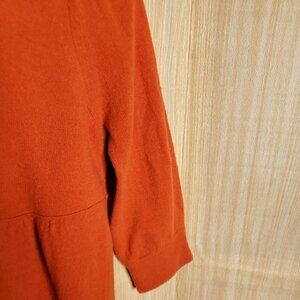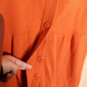 Tulle women’s orange wool blend ¾ sleeve cardigan sweater large. Gently used condition, there is some wash wear. Measurements are 17” sleeve, 22 ½" from shoulder to hem, and 18” from armpit to armpit.