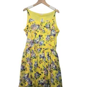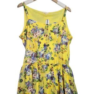 Tulle Women’s Yellow Floral Sleeveless Fit & Flare Dress Size Small Boho Sundres