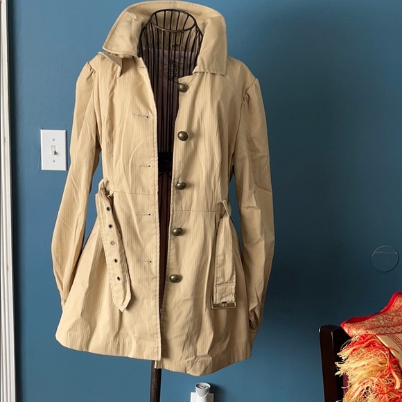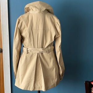 Cute tan spring/fall jacket with pink lining with belt.missing hood.