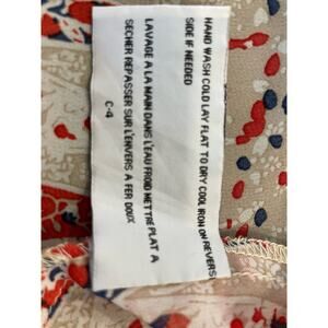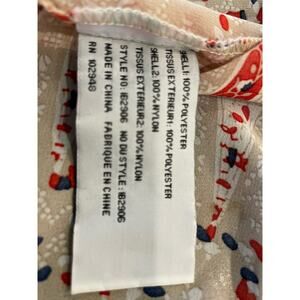 Tulle short sleeved top Medium Tan/Navy/Red colors beautiful tulle insert