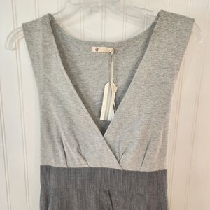 Tulle sleeveless dress low v-neck upper gray cotton, bottom blue chambray NWT