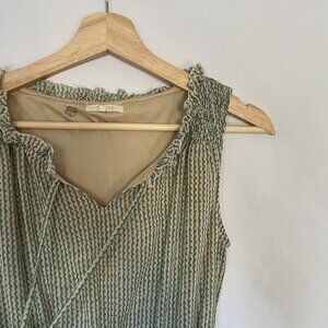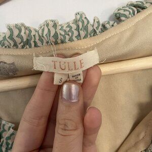 This charming women's sundress in size small features a delightful green and cream pattern, perfect for summer outings. Crafted from lightweight tulle, it offers a casual yet stylish look, ensuring comfort and breathability on warm days. Ideal for picnics, beach trips, or casual gatherings, this sundress effortlessly combines elegance with ease, making it a versatile addition to any wardrobe.