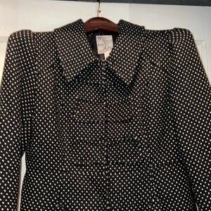 Tulle x Anthropologie retro Princess black/white polka dot swing pea coat wool S