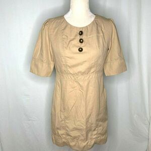 Tulle Anthropologie A Line Shift Dress M Tan Pockets Gold Buttons Side Zipper
