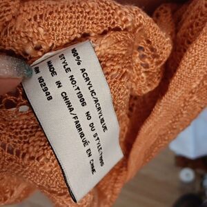 This salmon colored short kimono sleeve Tulle crocheted open front cardigan is a size Large with a pit to pit measuring >25" and a length of 35". In excellent condition. All offers are welcome.