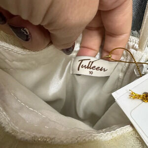 Tulleen One Shoulder Tulle Gold Ivory Solita Flower Girl Formal Dress Gown