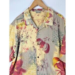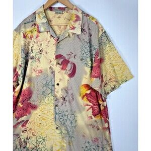 Tulliano Mens XL Silk Hawaiian Shirt Floral Abstract Short Sleeve Button Front