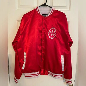 Tulones Men’s Red White Trim Bomber Jacket Retro Large Snaps Cuffs Hem and Wrist