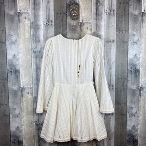 Tulrosea Nicole Embroidered Tie Waist Dress in White Size XXS New!