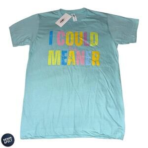 Tultex I Could Be Meaner Graphic Tee Aqua Blue Pastel Bold Print Sz Small NEW