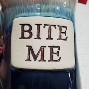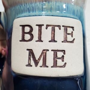 Tumbleweed Pottery North Carolina Large Blue & Tan 1980's "BITE ME" Coffee Mug