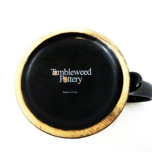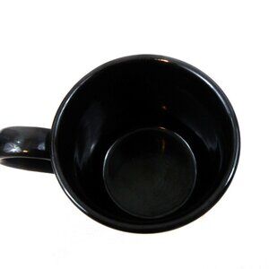 Description: Collectible Extra large black ceramic coffee mug / cup featuring the flags of the us army, navy, marines & air force on both sides. Manufactured by Tumbleweed Pottery. Made in China.