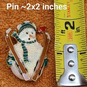 Tumbling/Falling Skiing Snowman Red Bird Cardinal Pin Brooch Enameled Gold Toned