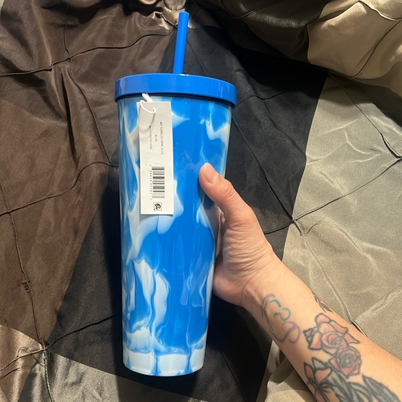 26oz blue tie dye tumblr, new with tags, for hot or cold drinks.