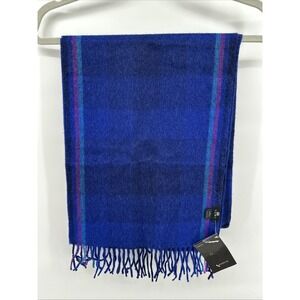 Tumi 100% Baby Alpaca Fringe Scarf Luxury Work Event Office Blue 12x64 NEW