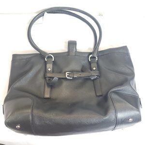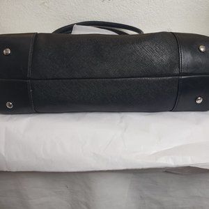 Elegant black leather laptop bag. Features sturdy handles and secure closure. Ideal for work and travel.