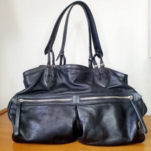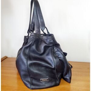 Tumi Black Leather Slouchy Shoulder Bag Travel Satchel Work Designer