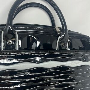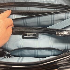 Tumi Black Patent Leather Laptop Shoulder Bag