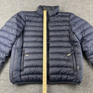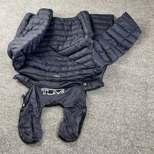 Tumi Black Puffer Jacket Full Zip Lightweight Quilted Design With Zippered Pocke