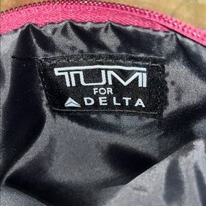 The Tumi Pink Cosmetic Bag is a chic and practical accessory, perfect for organizing your essentials. Crafted from a smooth, synthetic fabric with a slight sheen, it features a minimalist design and a secure zipper closure. Its vibrant pink hue and subtle brand detailing add a touch of elegance to your daily routine.