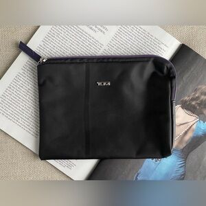 Tumi For Delta Lined Nylon Zip Cosmetic/Toiletry Pouch/Travel Bag Black/Purple