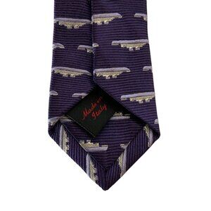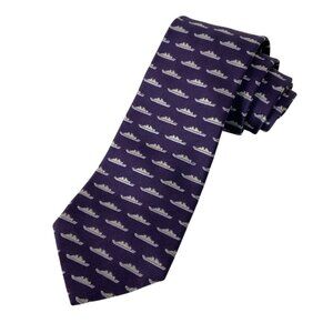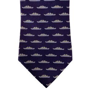 Tumi Mens Silk Faille Navy Ship Pattern Necktie Tie Purple Silver Made In Italy
