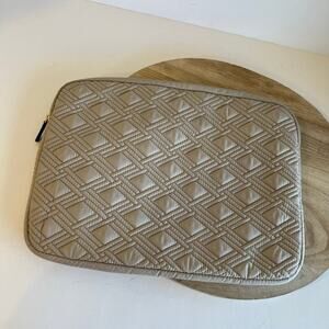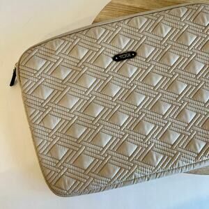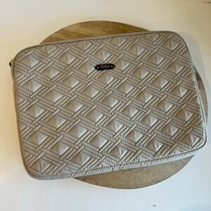 Tumi Sinclair Quilted Gray Laptop Sleeve Zipper Closure Travel Work Bag