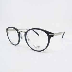 Tumi VTU025 02AN 50mm Matte Black Carbon Fiber/Silver Metal New Eyeglasses. 100% Authentic. The frame color is matte black and grey carbon fiber, silver shine metal on nose bridge with clear adjustable nose pads for comfort, lightweight, full rim, round style. Temple color is silver shine metal with black gloss acetate end tips. Lens color is clear, blue light lens. The lens width/bridge/temple size is 50mm 21mm 145mm. Frame is shipped with the Tumi case and microfiber cleaning cloth. Made in Japan. Box trays
