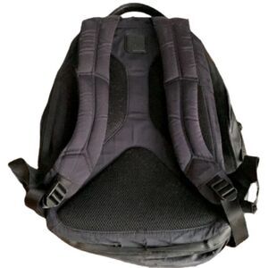 CONDITION: This backpack shows signs of heavy use, with scuffs on the outside nylon fabric and a few holes on the bottom. Part of the stitching on the bottom trim has come undone, and the original removable laptop sleeve is missing. See photos for detailed images of these conditions.