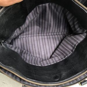 This is a black briefcase/handbag/tech bag. It’s in very good condition but would be better if you polished it up a little bit. Inside is clean. Please look at the pictures. Measures approximately 16 x 11 x 3