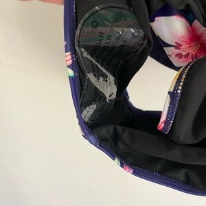 Plus Size One Piece Swimsuit: This plus size purple floral swimsuit comes with non-removable pads and a lace-up front, offering enhanced bust support and a touch of sexiness. 85% nylong 15% spandex.