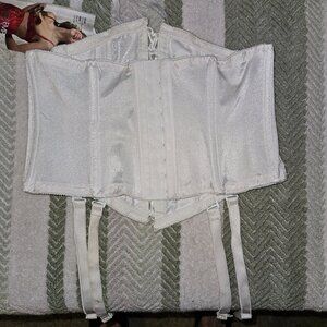 Tummy Smoother Corset w/Garters Bridal White MEDIUM