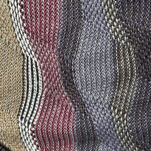 Classic Tundra Canada design with multicolor textured 3D knit pattern in maroon, beige, gray, black, and off-white tones.
