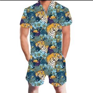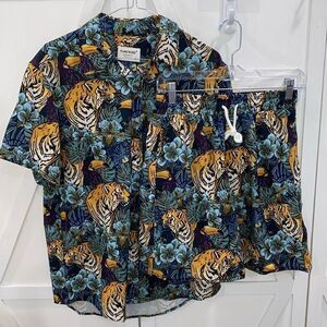 Tunevuse Men's Tropical Tigers And Toucans Button Down Shirt And Shorts Size S
