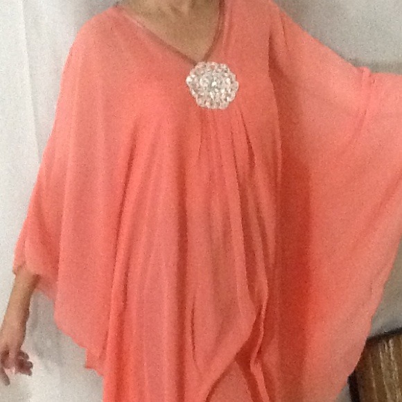 Chiffon tunic in salmon color.