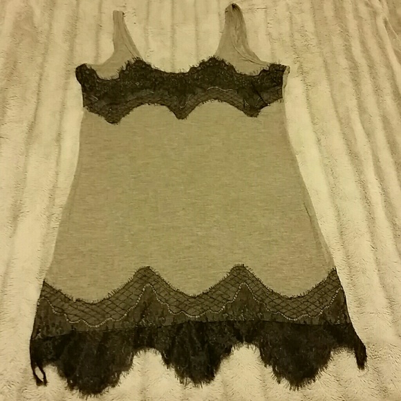 Soft gray stretch cotton tunic with black lace overlay.